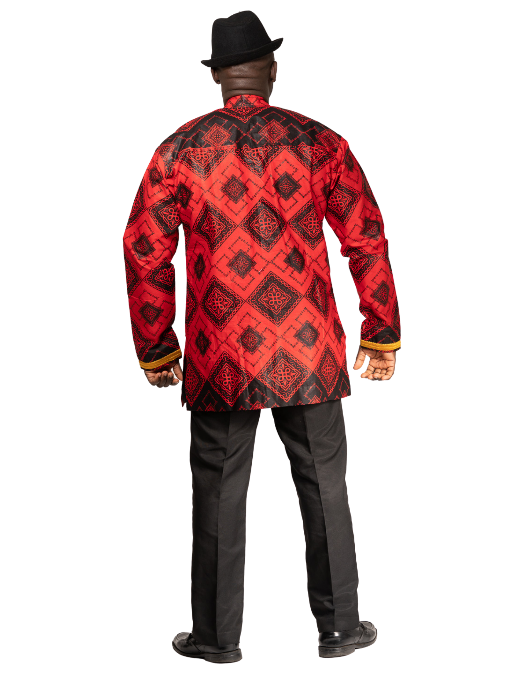 Black and Red shirt made authentic fabric , detailed with hand embroidered design. Can be customised.