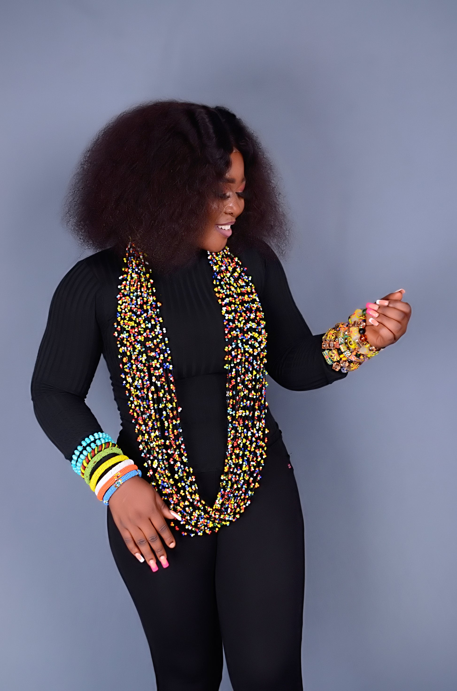 Add this bold, colorful and beautiful piece to your collection and you are ready to charge up any plain dress/outfit. This necklace and bracelet set is made of a series of pieces to pop-up or add color to your outfit!